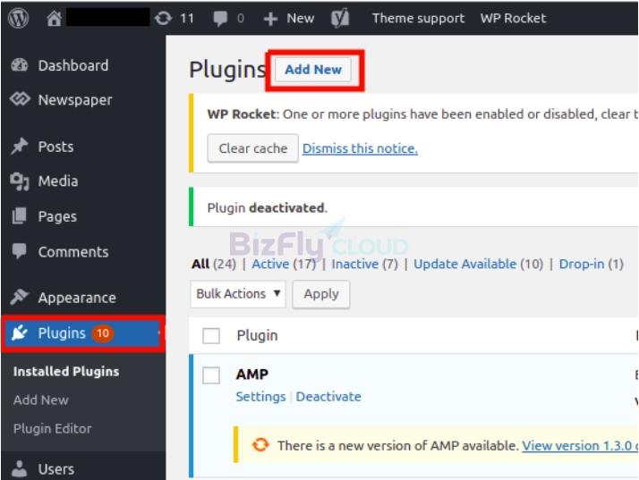 Tại giao diện quản trị WordPress, chọn Plugins > Add New.