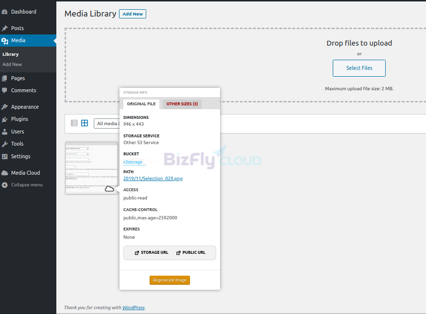 Sau khi cấu hình xong, ta có thể kiểm tra bằng cách tải 1 file lên WordPress
