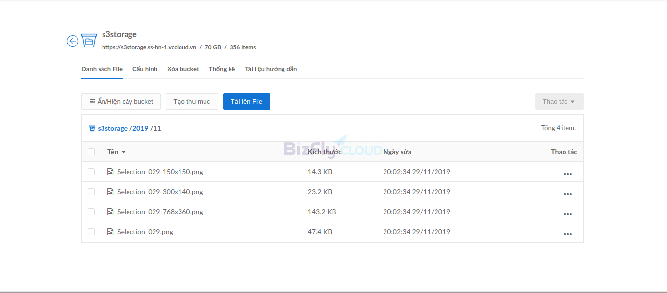VD: đuờng link của bucket s3storage như trong hình là: https://s3.xorcloud.net