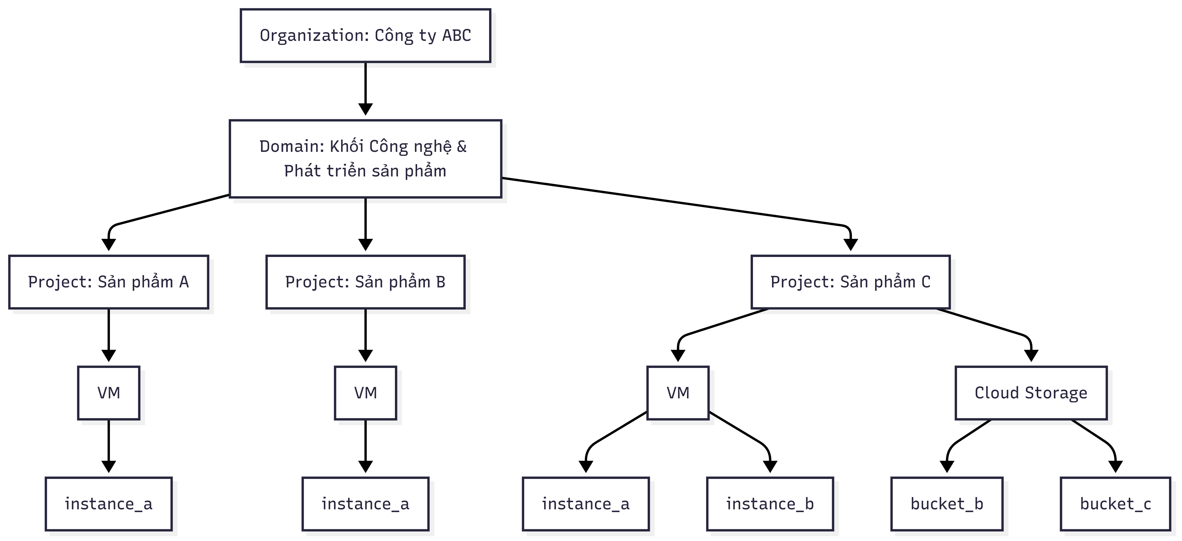* **Project**: Đơn vị quản lý nhỏ hơn trong Domain, tổ chức tài nguyên ảo hóa (VM, Storage, Network) cho nhóm người dùng hoặc ứng dụng cụ thể.