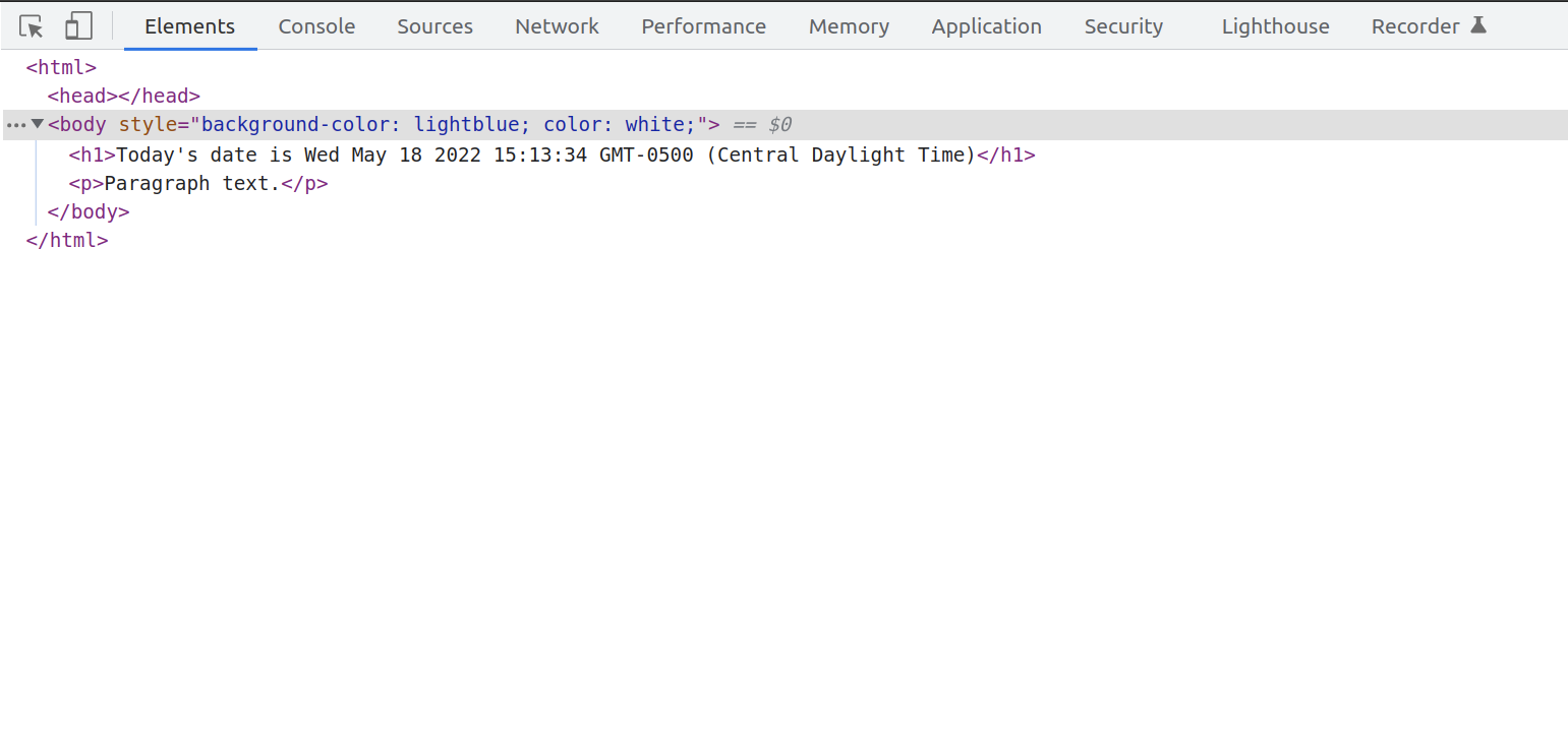 The page that you modified above would have a DOM view similar to this before reloading the page: