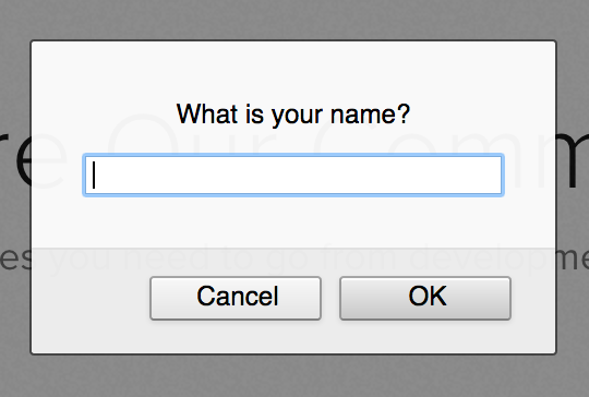 The dialog box that pops up over your web browser window includes a text field for the user to enter input. Once the user enters a value into the text field, they will have to click on OK for the value to be stored. The user can also prevent a value from being recorded by clicking on the Cancel button.