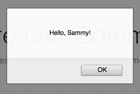 As discussed above, the alert() method creates a pop-up box over the browser window. We can use this method to greet the user by making use of the variable name.